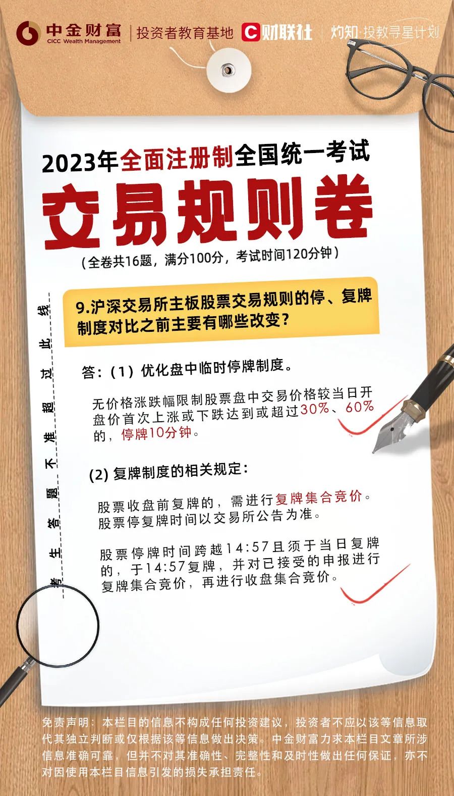 【中金财富】注册制考卷篇 | 交易规则卷(7):沪深交易所主板股票交易规则的停、复牌制度对比之前主要有哪些改变?