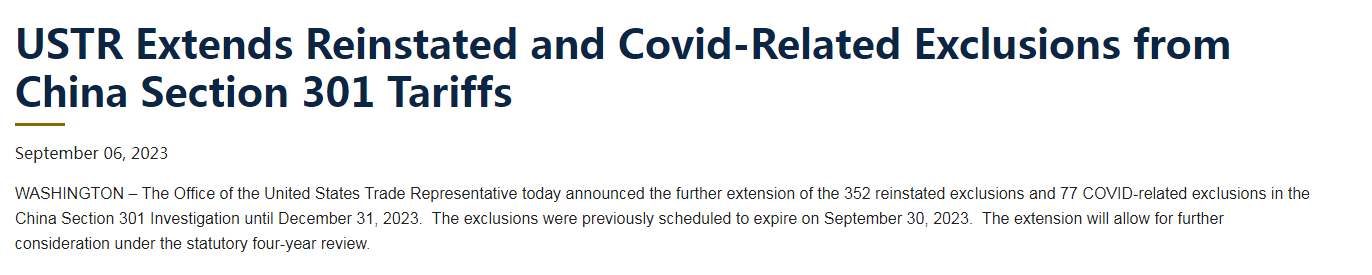 美国继续延长对中国防疫相关等产品的301关税豁免期至今年底