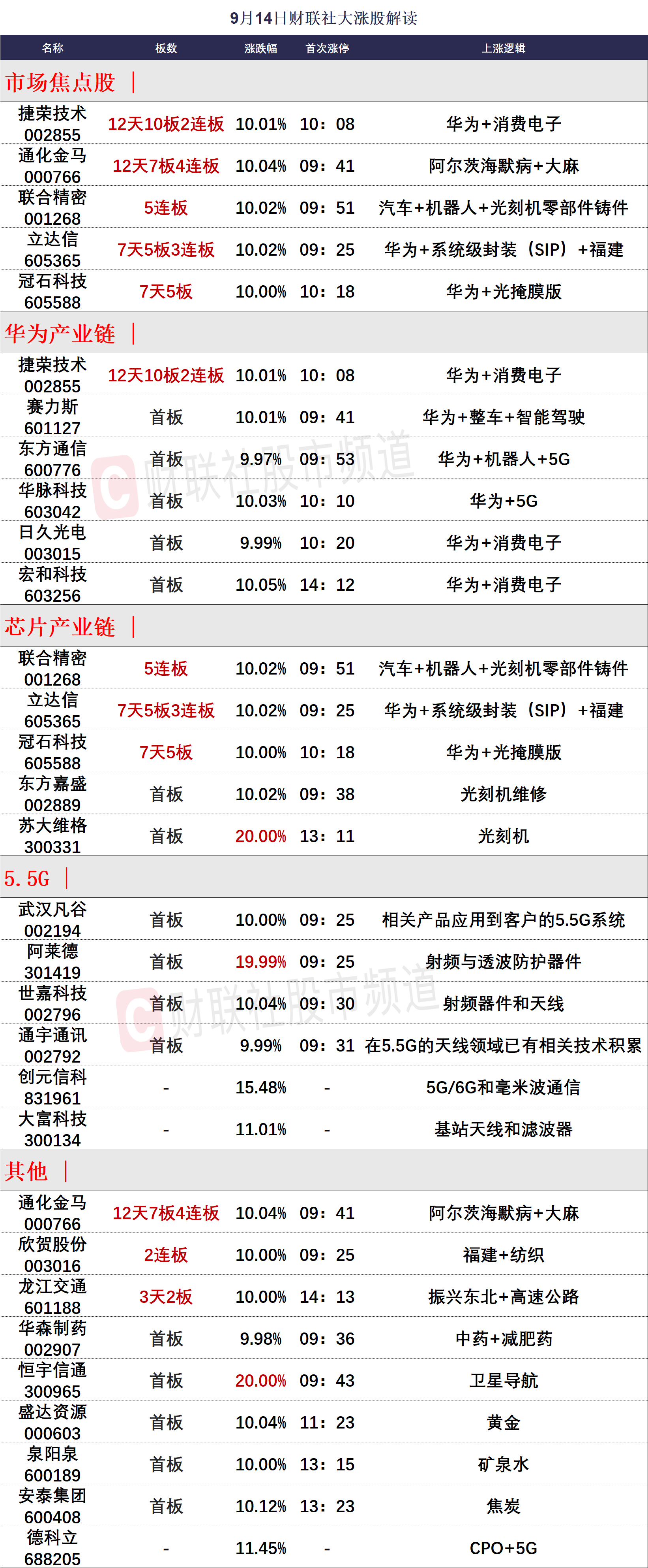 9月14日涨停分析