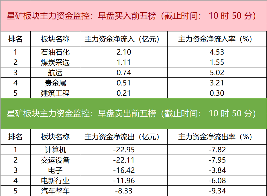财联社9月19日电,财联社星矿数据显示,今日早盘主力资金净流入石油石化、煤炭采选、航运等板块,净流出计算机、交运设备、电子等板块,其中计算机板块净流出超22亿元。个股方面,华映科技大涨,主力资金净买入1.78亿元,工业富联、华东数控、兆易创新获主力资金净流入居前;赛力斯遭净卖出超4亿元,科大讯飞、春兴精工、江淮汽车主力资金净流出额居前。