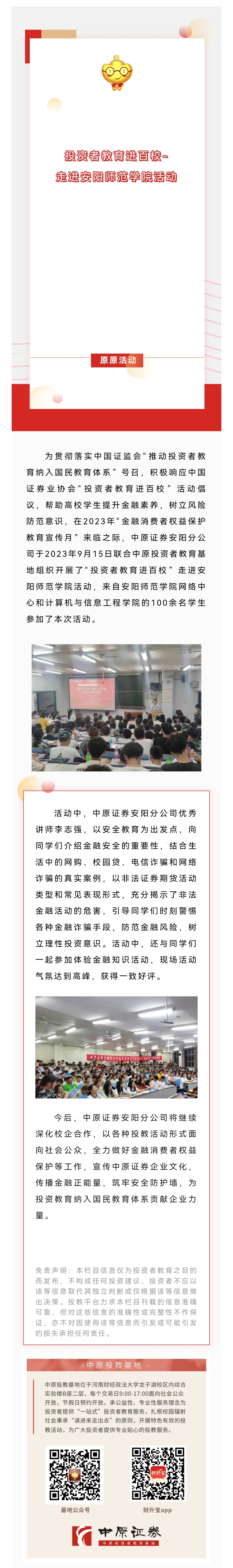 2023年金融消费者权益保护教育宣传月 | 中原证券安阳分公司组织开展 “投资者教育进百校”走进安阳师范学院活动