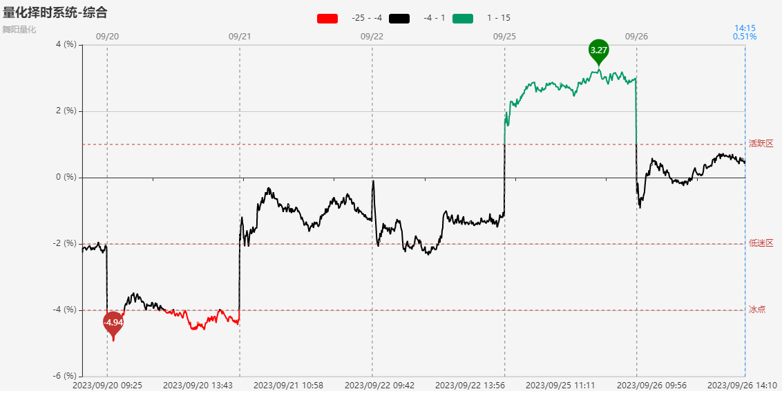 大盘午后维持弱势震荡,三大指数跌幅有所扩大。盘面上个股跌多涨少,两市超3000只个股下跌。午后第一个小时市场成交量较上个交易日缩量55亿。此外,北向资金午后持续流出,目前已净卖出超50亿。板块方面,新型工业化、手机游戏、机器视觉、数据安全等板块涨幅居前,资金午后聚焦工业化方向,星闪概念、华为海思、CRO、复合集流体等板块跌幅居前。短线情绪指标显示,市场短线情绪午后在0轴上方震荡。