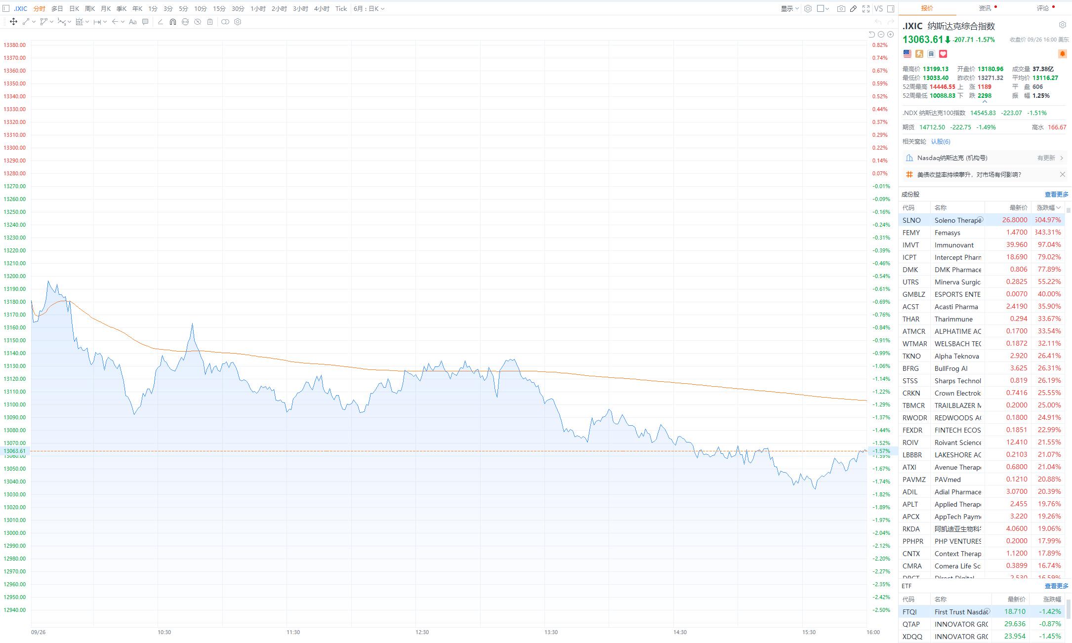 美股三大指数集体收跌 医药公司Immunovant逆势大涨超97%