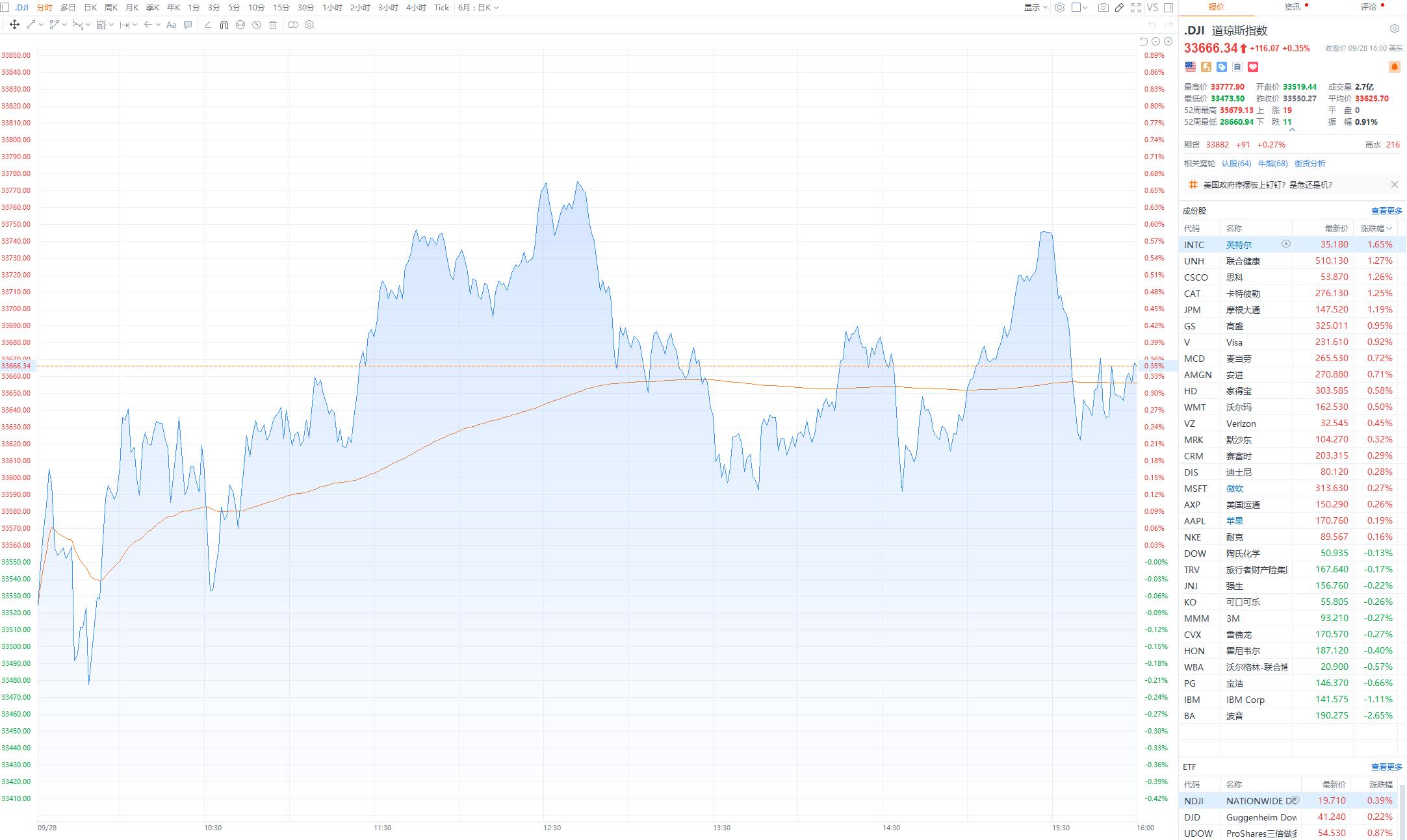 财联社9月29日电,美股三大指数集体收涨,纳指涨0.83%,标普500指数涨0.59%,道指涨0.35%。大型科技股多数上涨,特斯拉、Meta涨超2%,英伟达、谷歌涨超1%,苹果、微软小幅上涨;奈飞小幅下跌,亚马逊连续两日平收。银行股集体上涨,摩根大通、高盛、花旗、美国银行涨超1%,摩根士丹利、富国银行小幅上涨。