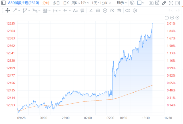 财联社9月29日电,富时A50指数期货涨幅扩大至2%。
