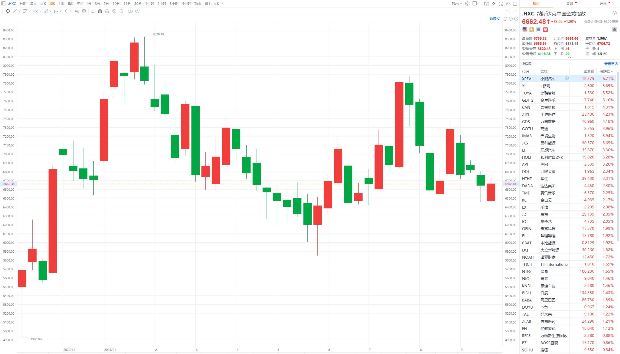 财联社9月30日电,热门中概股多数上涨,纳斯达克中国金龙指数涨1.2%,本周累涨0.29%,9月份累跌5.51%,三季度累涨1.6%。小鹏汽车涨超6%,理想汽车涨超3%,拼多多、腾讯音乐、爱奇艺涨超2%,百度、蔚来、网易涨超1%;携程网、新东方小幅下跌。