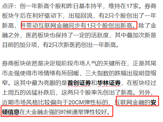 文章指出:1)互联网金融概念股首创证券在8月15日获资金买入大涨,创下历史新高。2)互联网金融的安硕信息在大金融走强的时候通常弹性较好。