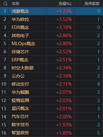 财联社10月10日电,大盘全天高开后冲高回落,三大指数均收跌。盘面上,华为概念股继续活跃,其中鸿蒙方向领涨,测绘股份、常山北明、达华智能等涨停;智能驾驶方向午后走强,光弘科技、深城交涨超10%,金溢科技涨停;星闪概念股尾盘拉升,高鸿股份涨停。算力概念股震荡走强,立方数科20CM涨停,莲花健康3连板。下跌方面,一带一路概念股集体调整,中钢国际、中工国际等跌停。此外高位股迎来分歧调整,精伦电子、通化金马、捷荣技术跌停。总体上个股跌多涨少,两市超3000只个股下跌。沪深两市今日成交额7747亿,较上个交易日放量47亿。板块方面,鸿蒙概念、存储芯片、星闪概念、智能驾驶等板块涨幅居前,减肥药、中药、中字头、厨卫电器等板块跌幅居前。截至收盘,沪指跌0.7%,深成指跌0.56%,创业板指跌0.53%。北向资金全天净卖出54.71亿元,其中沪股通净卖出47.57亿元,深股通净卖出7.15亿元。