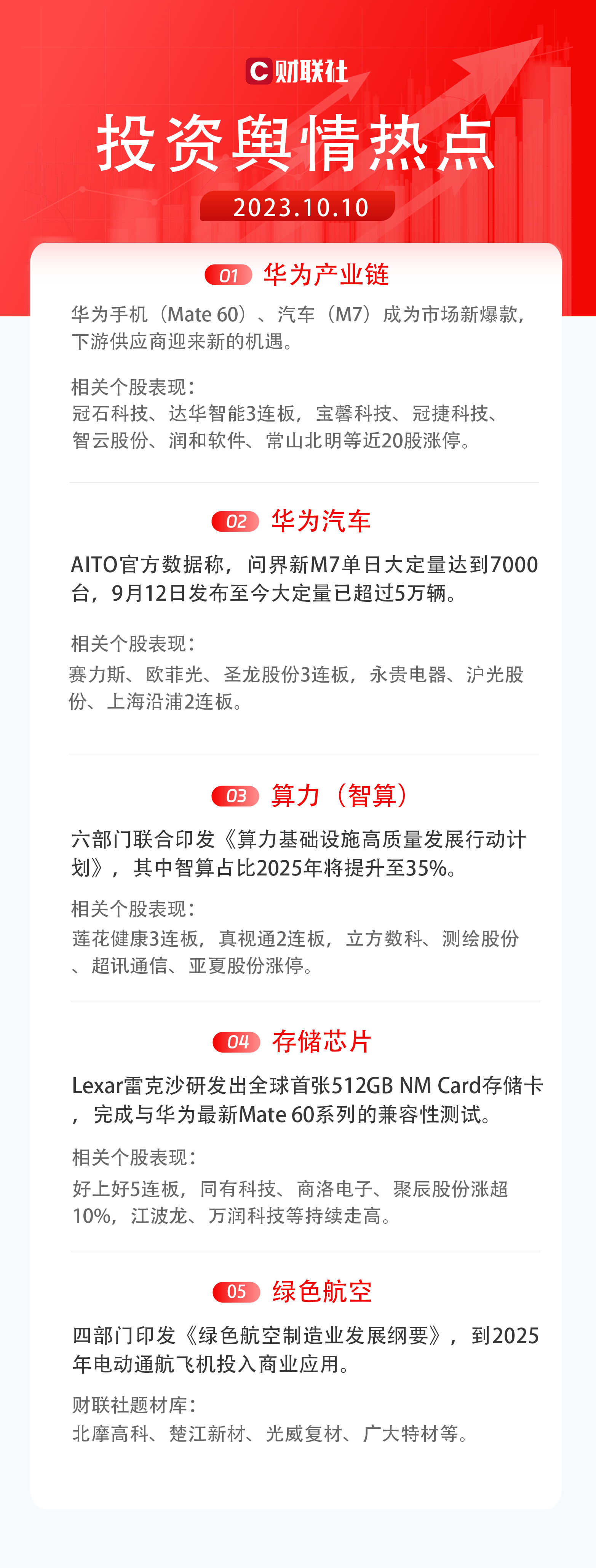 1)华为产业链:华为手机(Mate 60)、汽车(M7)成为市场新爆款,下游供应商迎来新的机遇。