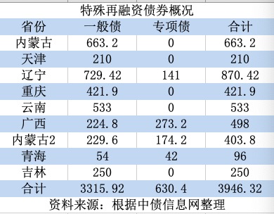 近期多个省份开始发行特殊再融资债券:截至10月10日,八省份拟发、待发规模合计约4000亿,其中内蒙古一个省份的规模就超过1000亿。