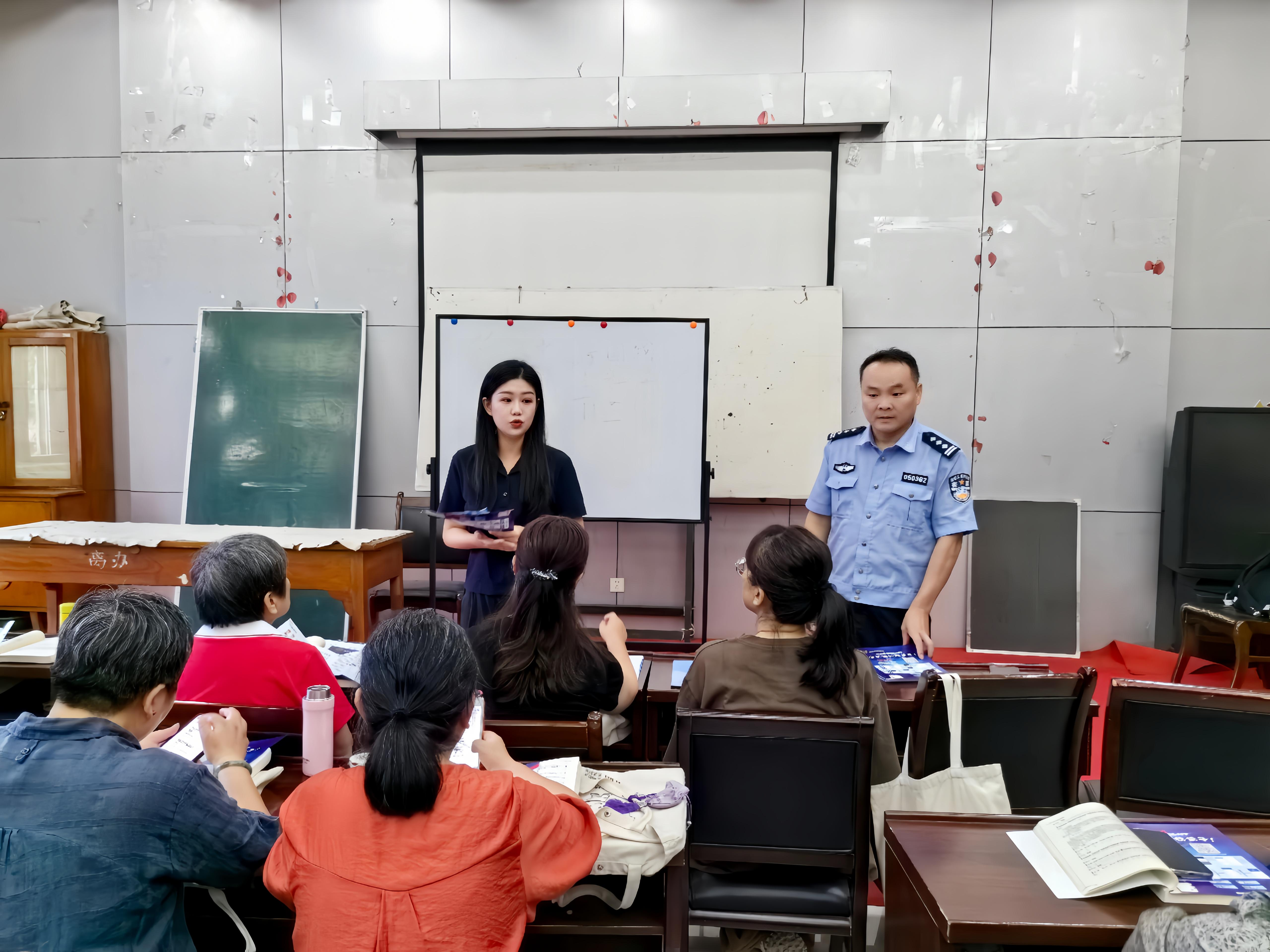 雁塔分局户政大队红雁反诈宣讲团贺警官现场详细讲解了以“夕阳红老年团、投资养老、养老保健品”等虚假形式的真实电诈案例,讲述犯罪分子如何利用老年人心理而实施诈骗行为,并传授应对网络诈骗的技能和方法,通过有奖互动问答调动大家的学习兴趣,提升活动参与度。