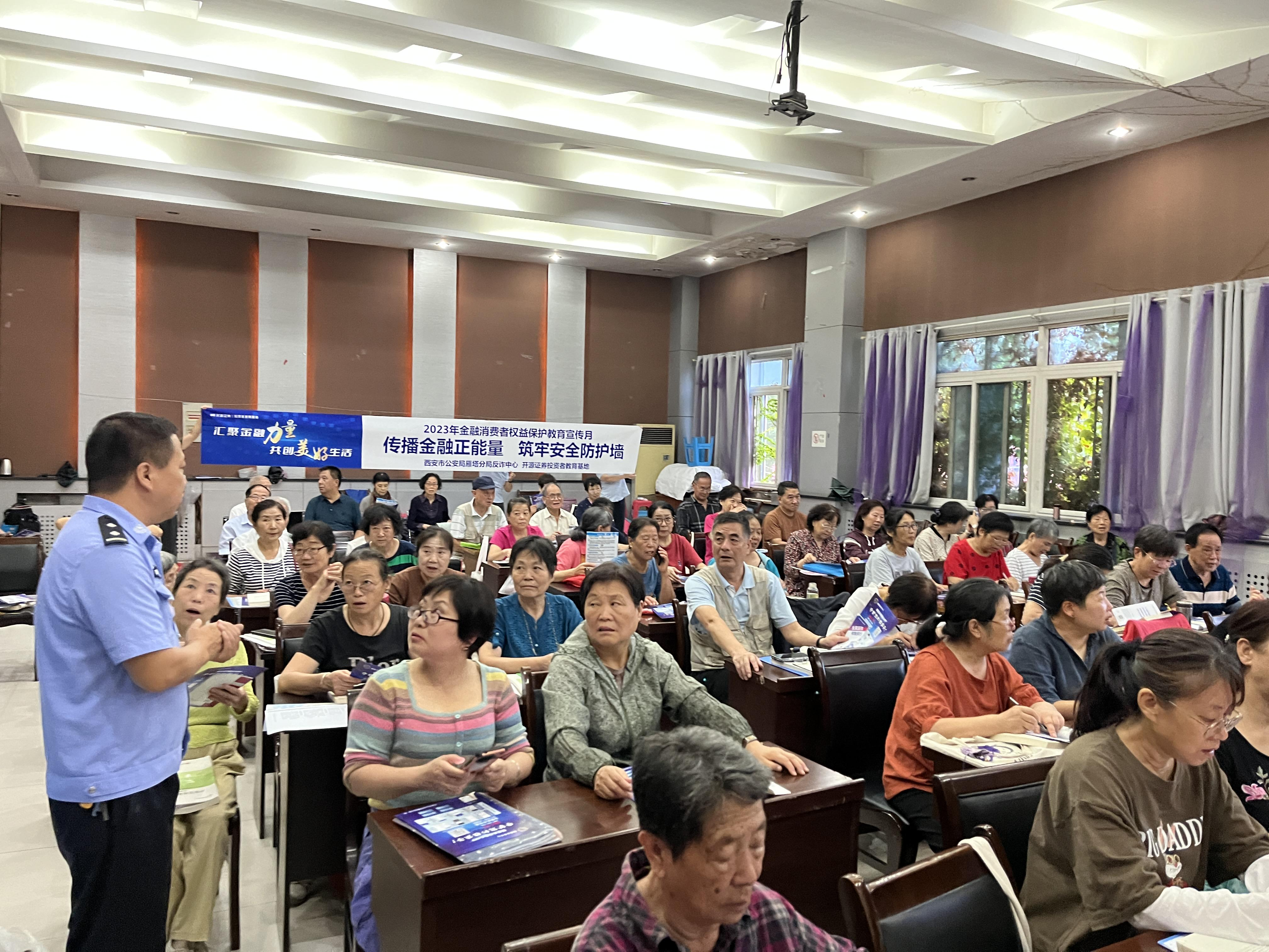 当前,电信网络诈骗手段层数不穷,危害人民群众财产安全和社会安定。为进一步提升社区群众特别是老年群体防非反诈意识,加强对非法金融活动、电信网络诈骗的宣传力度,9月19日,西安市公安局雁塔分局反诈中心联合开源证券投教基地、开源证券太白南路营业部,共同走进204所社区老年大学,开展传播金融正能量,筑牢安全防护墙——2023年金融消费者权益保护教育宣传月进社区活动。