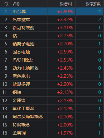 财联社10月12日电,大盘全天高开后震荡反弹,沪指领涨。盘面上,新能源赛道股展开反弹,其中锂矿股领涨,江特电机、永兴材料、中矿资源涨停;锂电池概念股震荡走强,星云股份、鹏辉能源涨超10%;风电概念股午后拉升,泰胜风能、东方电缆涨超5%。汽车及零部件概念股全天强势,长城汽车、隆基机械、圣龙股份涨停。大金融股受汇金公司增持四大行利好刺激开盘冲高,中国太保、中国银行、中国银河等涨超3%。医药股反复活跃,海辰药业、百花医药等涨停。下跌方面,光刻机概念股陷入调整,蓝英装备跌超10%。总体上个股涨多跌少,两市超3200只个股上涨。沪深两市今日成交额8313亿,较上个交易日缩量75亿。板块方面,锂矿、汽车整车、固态电池、肝炎概念等板块涨幅居前,光刻机、传媒、油气、CPO等板块跌幅居前。截至收盘,沪指涨0.94%,深成指涨0.83%,创业板指涨0.76%。北向资金全天净买入66.16亿元,其中沪股通净买入48.42亿元,深股通净买入17.73亿元。