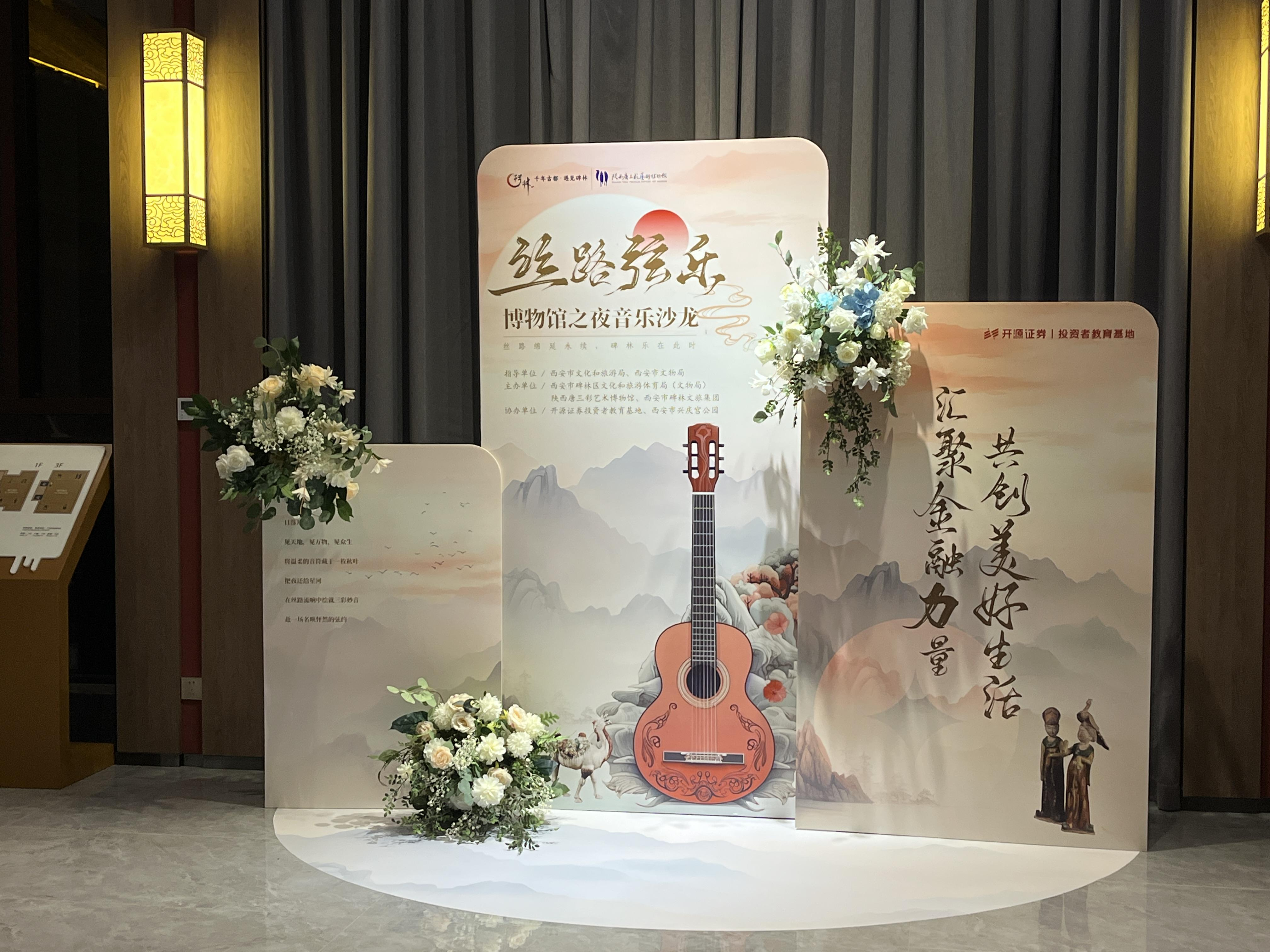 品味丝路多元文化,聆听大唐盛世弦音。为大力弘扬中华优秀传统文化,提升人民群众文化自信,加强文物活化利用。10月10日,由西安文化和旅游局、西安市文物局指导,西安市碑林区文化和旅游体育局(文物局)、陕西唐三彩博物馆、西安市碑林文旅集团主办,开源证券投资者教育基地、西安市兴庆宫公园协办的“丝路弦乐”博物馆之夜音乐会在陕西唐三彩博物馆举办。