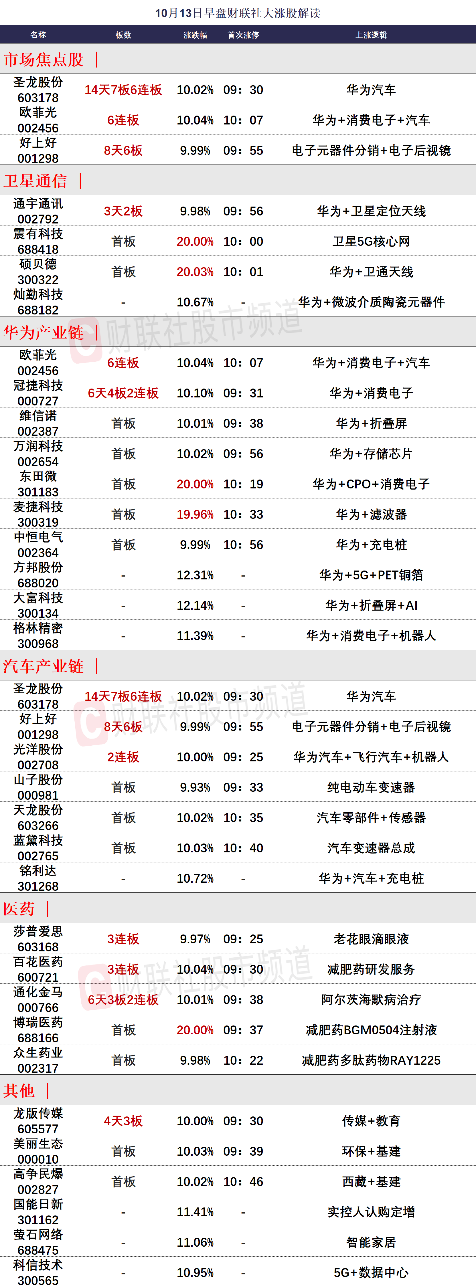 10月13日午间涨停分析