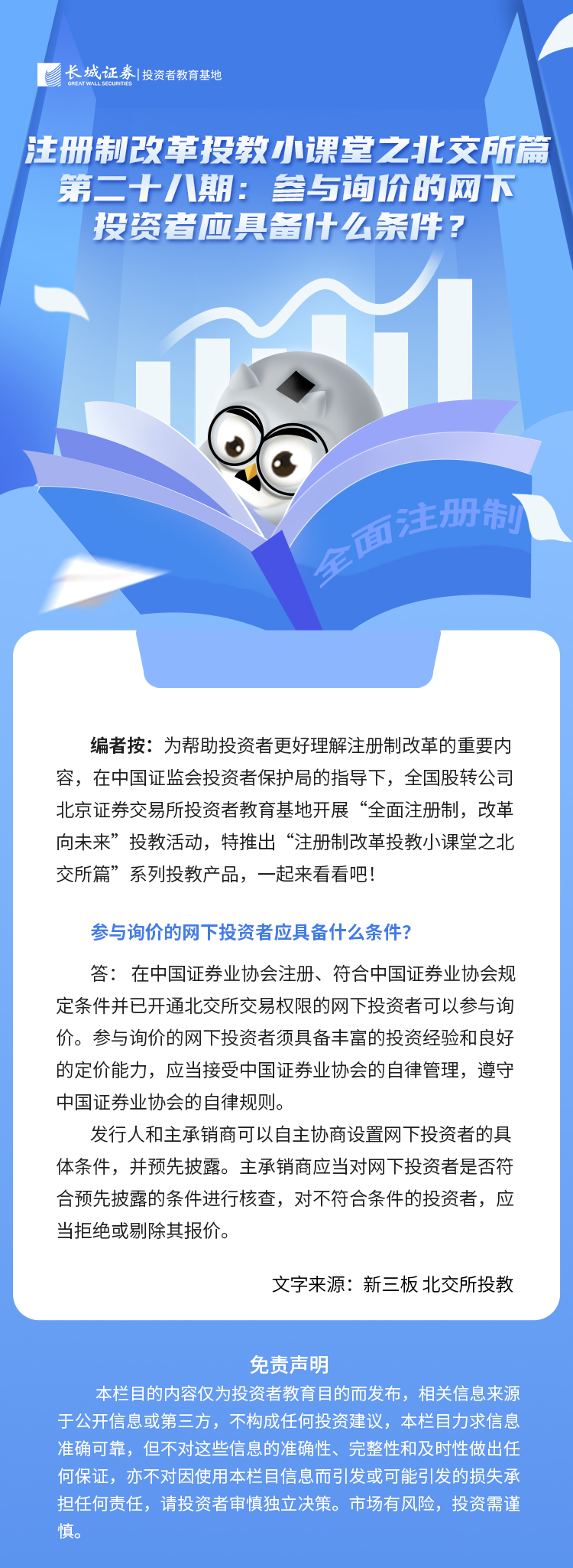注册制改革投教小课堂之北交所篇丨第二十八期:参与询价的网下投资者应具备什么条件?