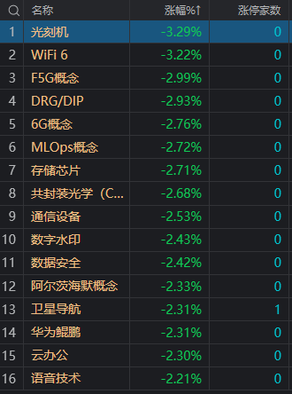 财联社10月20日电,市场早盘延续调整,三大指数均小幅下跌,沪指失守3000点。盘面上,新能源赛道股展开反弹,其中锂矿股领涨,吉翔股份2连板,赣锋锂业涨超7%;风电股震荡走强,大金重工涨停,双一科技涨超10%;电网概念股集体走强,中恒电气、白云电器等涨停。地产股盘中反弹,金科股份、荣盛发展涨停。石墨烯概念股异动拉升,德尔未来、华丽家族涨停。下跌方面,光刻机概念股集体调整,张江高科跌停。总体上个股跌多涨少,两市超2700只个股下跌。沪深两市今日成交额4695亿,较上个交易日缩量311亿。板块方面,锂矿、房地产、石墨烯、电力设备等板块涨幅居前,光刻机、6G、CPO、卫星导航等板块跌幅居前。截至收盘,沪指跌0.27%,深成指跌0.36%,创业板指跌0.44%。北向资金方面,沪股通早盘净流入4.34亿,深股通早盘净流出10.47亿。