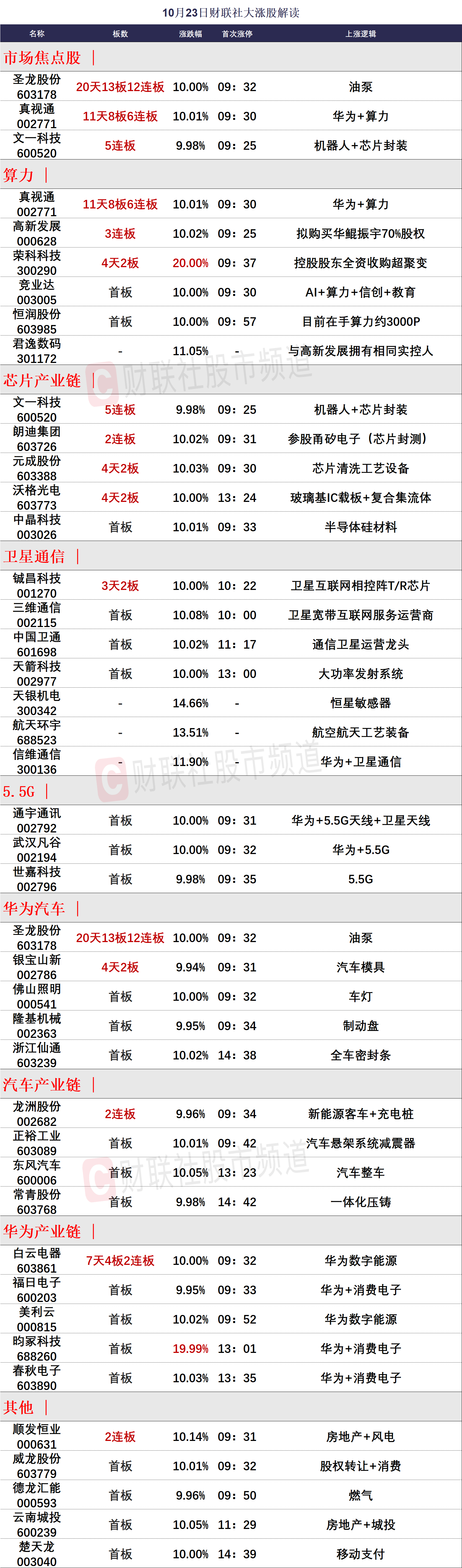 今日共36股涨停,连板股总数8只,11股封板未遂,封板率为76%(不含ST股、退市股及未开板新股)。个股方面,汽车产业链的圣龙股份20天13板、龙洲股份2板、银宝山新4天2板,算力板块真视通11天8板、高新发展3板、荣科科技创业板4天2板,芯片产业链的文一科技5板、朗迪集团2板、元成股份4天2板,华为产业链的白云电器7天4板,卫星通信板块铖昌科技3天2板。今日收涨个股373只,收跌个股4675只。