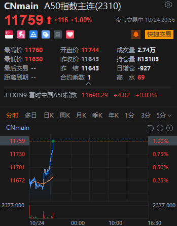 增发1万亿元国债 富时A50中国指数期货涨幅扩大至1%