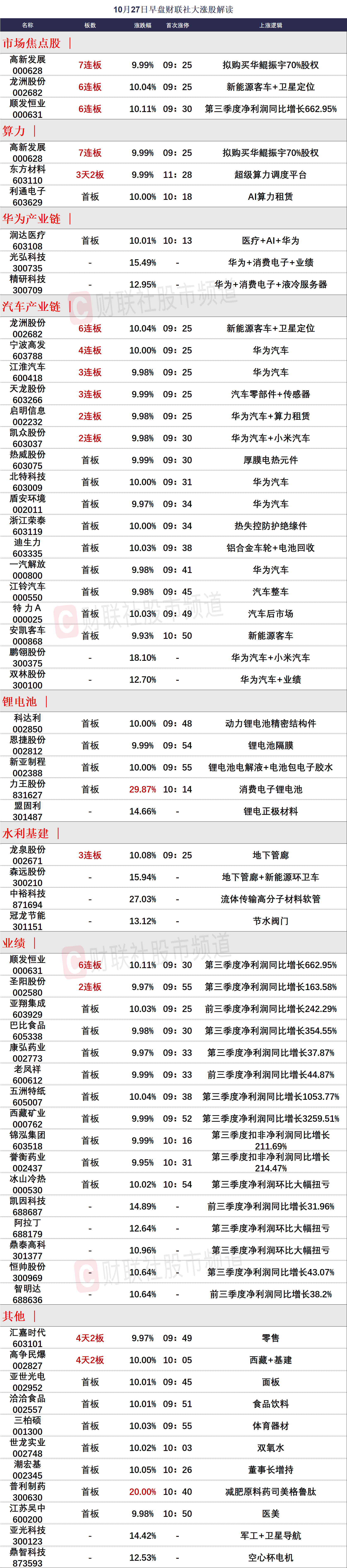 10月27日午间涨停分析