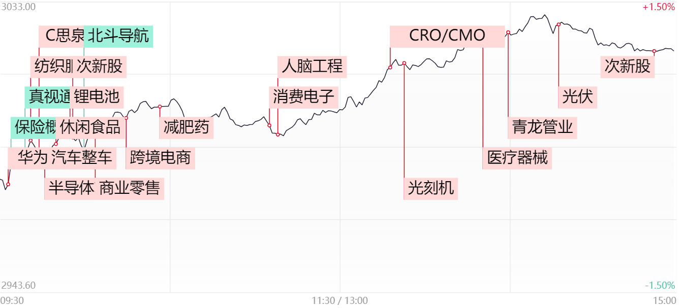 上个交易日,三大指数集体低开,华为汽车为首的汽车产业链再度迎来爆发,此后锂电池、光伏等新能源赛道展开强力反弹,午后医药板块全线走强,股指涨势持续扩大,沪指强势收复3000点整数关,创业板指最终涨近3%。沪深两市成交额9644亿,较上个交易日放量1219亿。1)汽车产业链近期热度持续加强,华为汽车方向继续领涨,宁波高发4连板,江淮汽车、铭科精技、天龙股份3连板,启明信息、凯众股份、鹏翎股份等2连板。华为与赛力斯、奇瑞、江淮、北汽蓝谷相继达成智选合作,与长安汽车达成HI合作模式,华为汽车朋友圈不断扩大。2)医药、医疗产业链大面积爆发,其中减肥药、创新药、CRO方向领涨,普利制药20CM涨停,昭衍新药、江苏吴中、方盛制药、恩华药业等大面积涨停。近期医药产业链多家核心公司公布的三季报业绩总体改善力度相对有限,不过例如CRO、创新药等赛道的核心公司多数从高点已经回撤超六成,其跌幅已经充分体现行业或者公司业绩上的下滑。3)锂电池板块表现不俗,科达利、恩捷股份、胜华新材、黑猫股份等纷纷涨停,盟固利、德方纳米大涨超10%,宁德时代盘中一度涨超4%。根据中国汽车动力电池产业创新联盟数据,2023 年9月中国动力和储能电池生产量77.4GWh,环比增长5.6%。4)三季报业绩大增公司近期涨停家数明显增加,顺发恒业走出6连板,圣阳股份2连板,凯因科技、诚达药业、阿拉丁、巴比食品、紫燕食品等多股涨停。截止10月26日,682家已经公布三季报的公司第三季度归母净利润环比二季度度实现增长。
