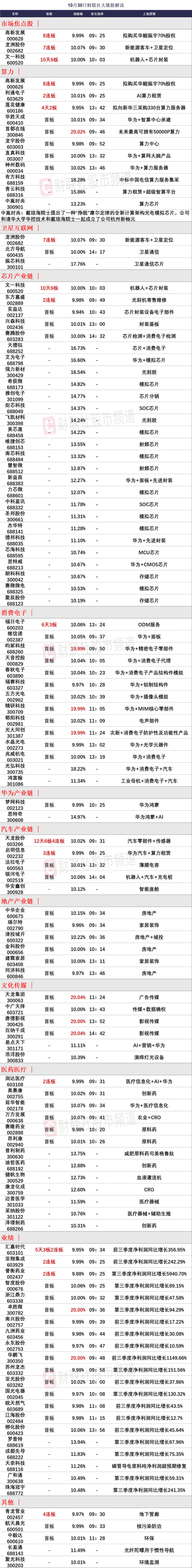 10月30日涨停分析
