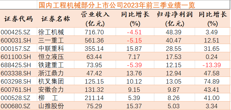 Q3净利增幅居前的柳工证券部人士也表示,公司Q3净利润环比增速较快,主要取决于公司多个产品发力的共同作用,平滑了周期波动。