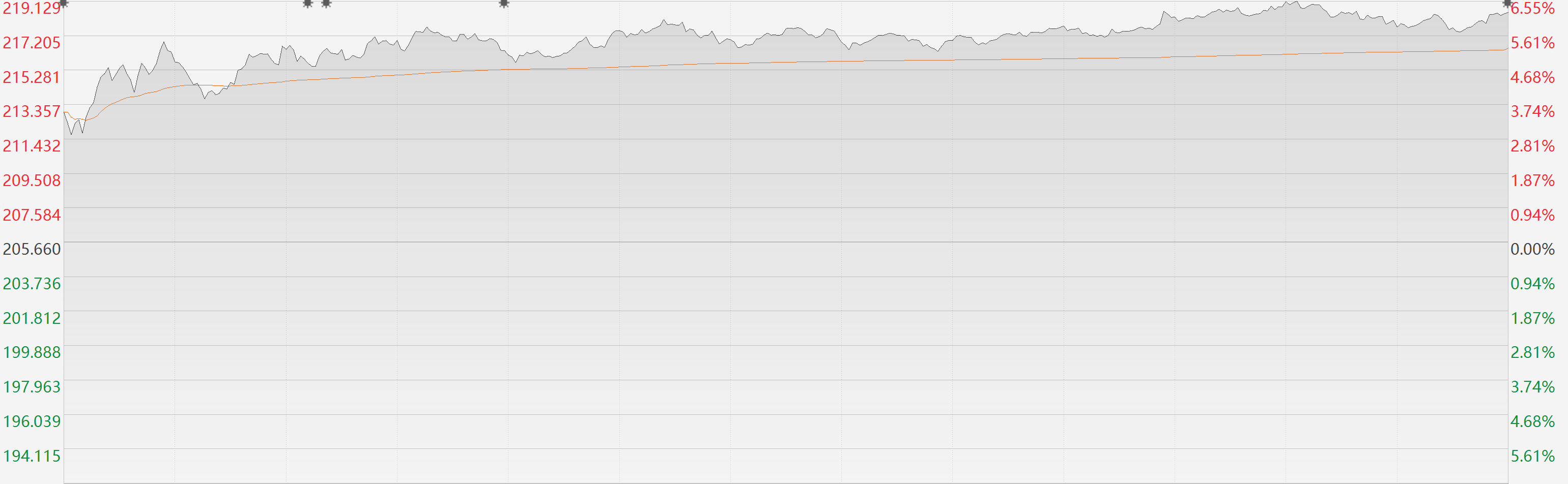 截至美股收盘,特斯拉涨6.25%,报收218.51美元。