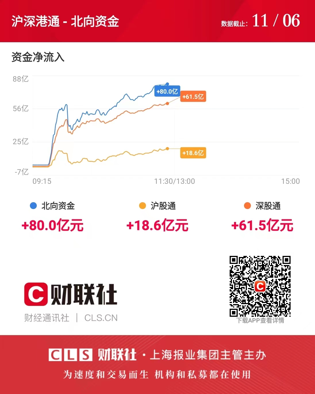 北向资金净流入超80亿元