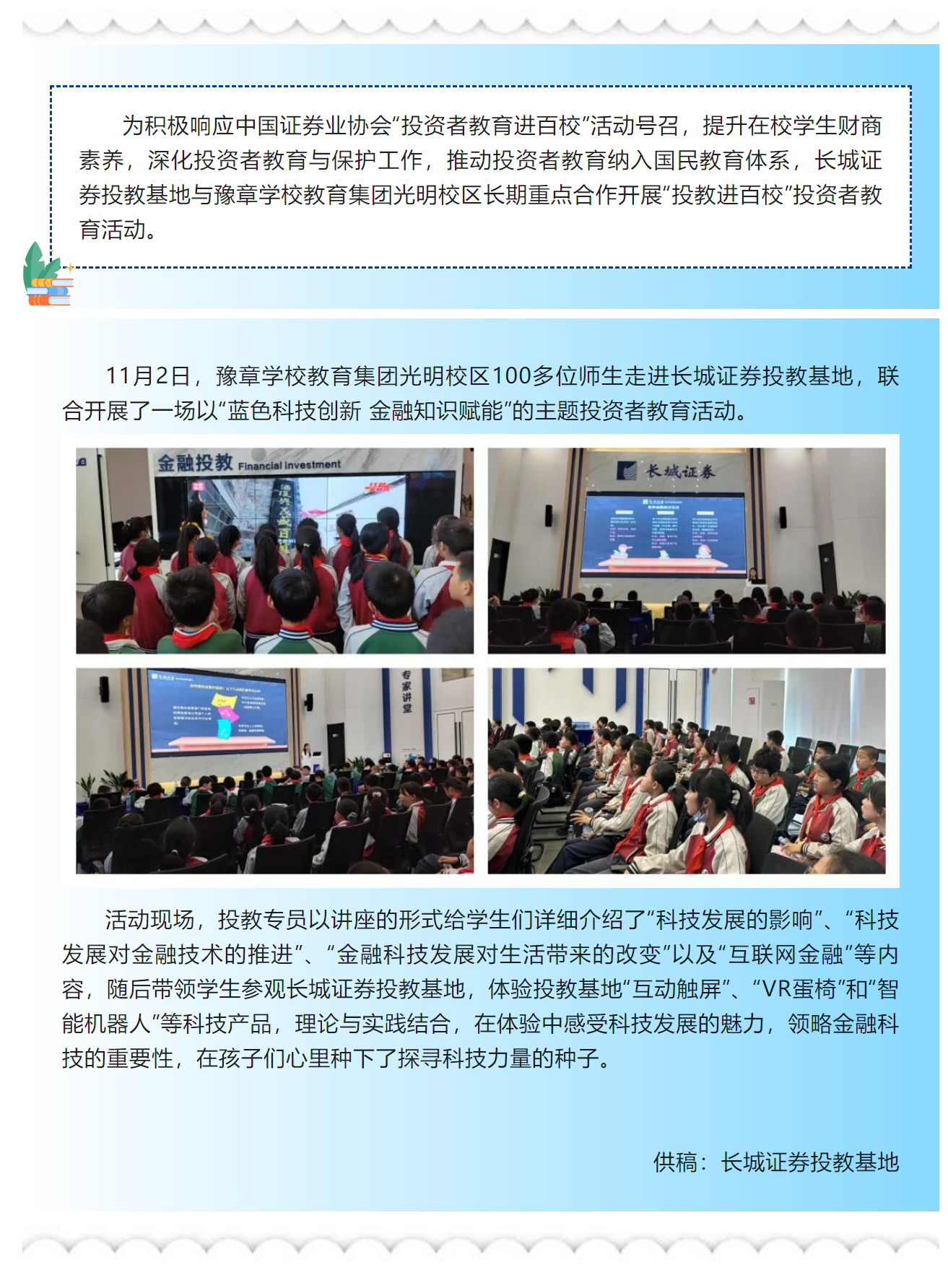 【城·活动】投教进百校—长城证券投教基地走进豫章学校教育集团光明校区开展“蓝色科技创新”主题活动