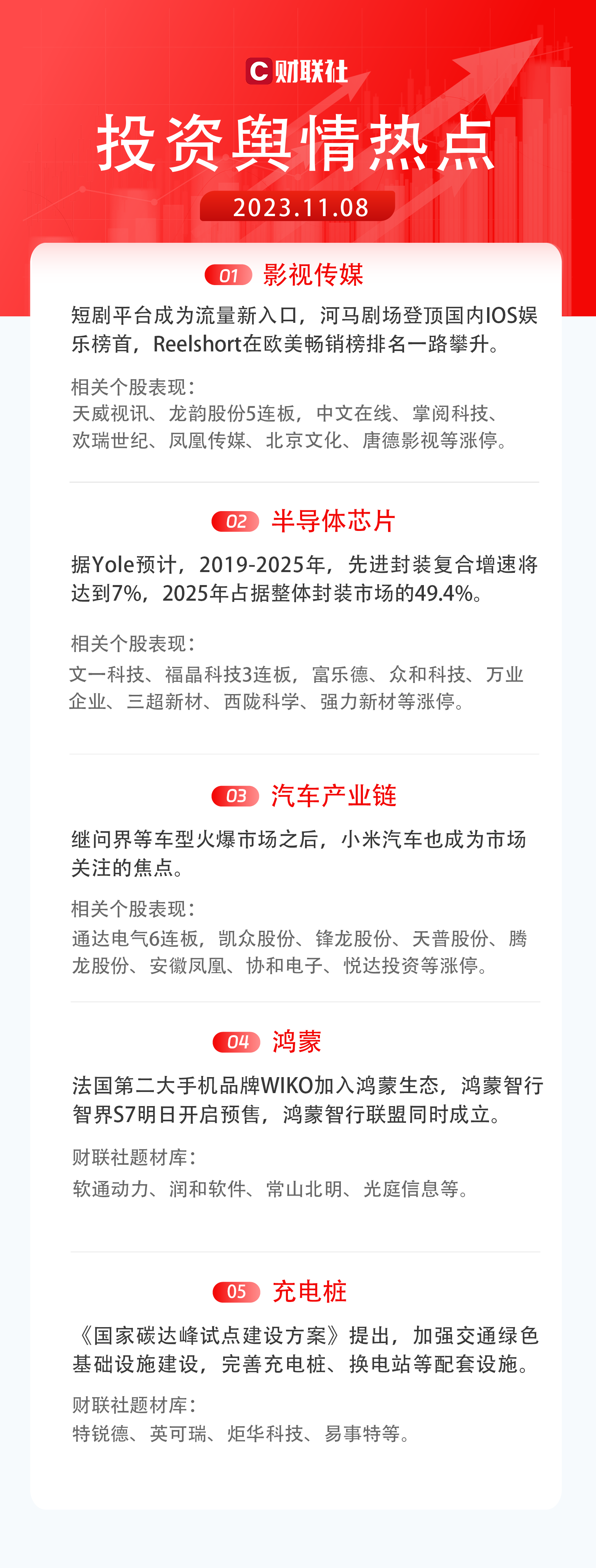 3)汽车产业链:继问界等车型火爆市场之后,小米汽车也成为市场关注的焦点。
