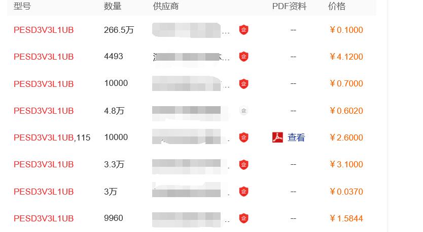 从新能源汽车上所需的TVS芯片来看,其中一款型号为PESD3V3L1UB芯片,价格最低已杀至0.1元,而该款芯片不同厂商售价也不尽相同,有的售价0.6元,有的售价0.37元。
