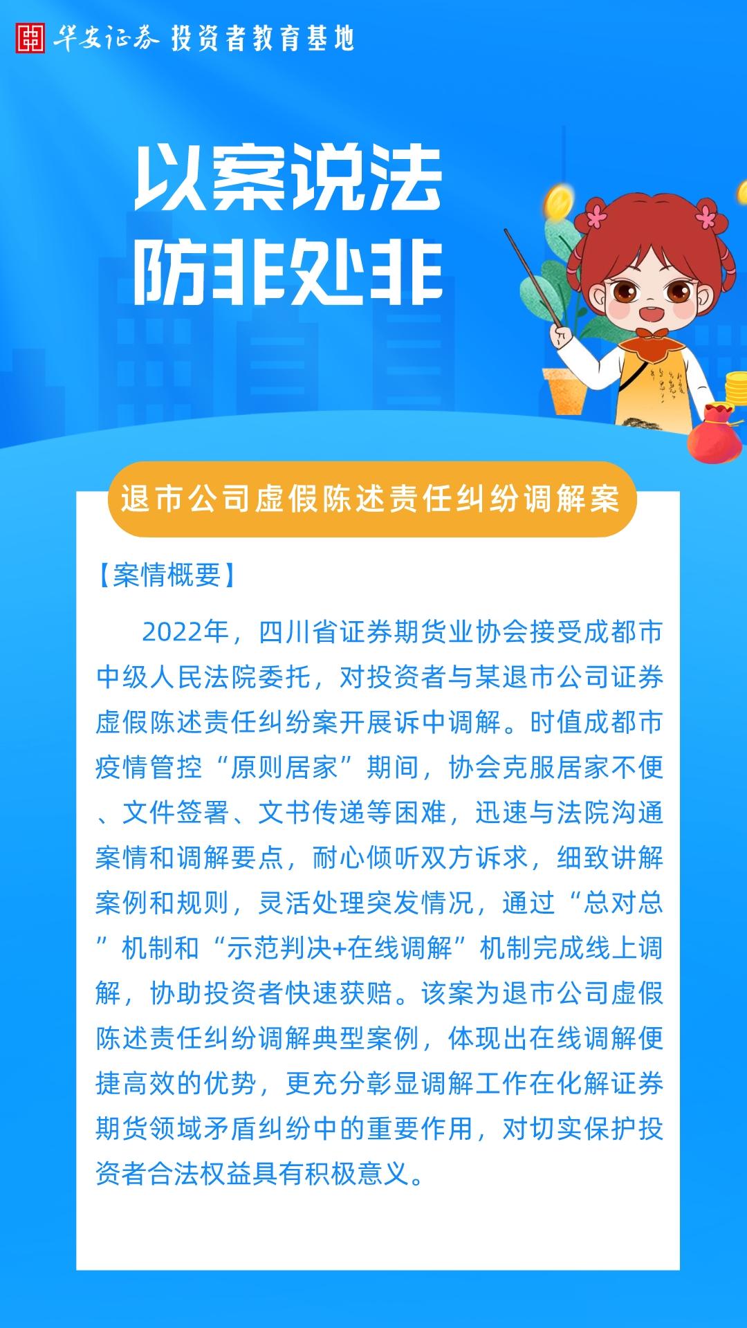 华小安惠学习 |【以案说法 防非处非】退市公司虚假陈述责任纠纷调解案