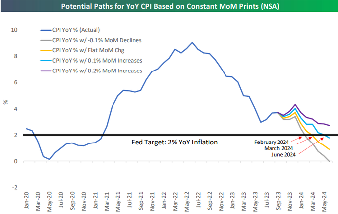 财联社11月14日电,虽然美国通胀数据已较去年秋天的峰值出现了大幅回落,但想要回到美联储2%的通胀目标,或许仍有一段艰巨的漫长旅程。根据媒体调查经济学家的预测,今晚公布的美国10月CPI环比涨幅有望回落至0.1%,创下5月以来的新低。然而,根据Bespoke投资集团的估算,即便是未来持续保持这一较低的环比增速,美国CPI同比增速也要到明年6月才能回到2%的目标内。而若未来环比增速高于这一数字,则通胀“达标”的日子将会变得更加遥遥无期。