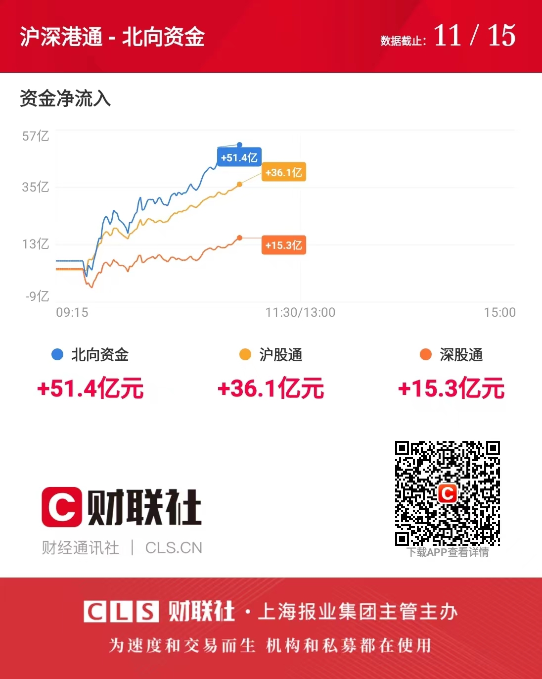 财联社11月15日电,截至发稿,北向资金净流入超50亿元,其中,沪股通净流入超35亿元,深股通净流入超15亿元。