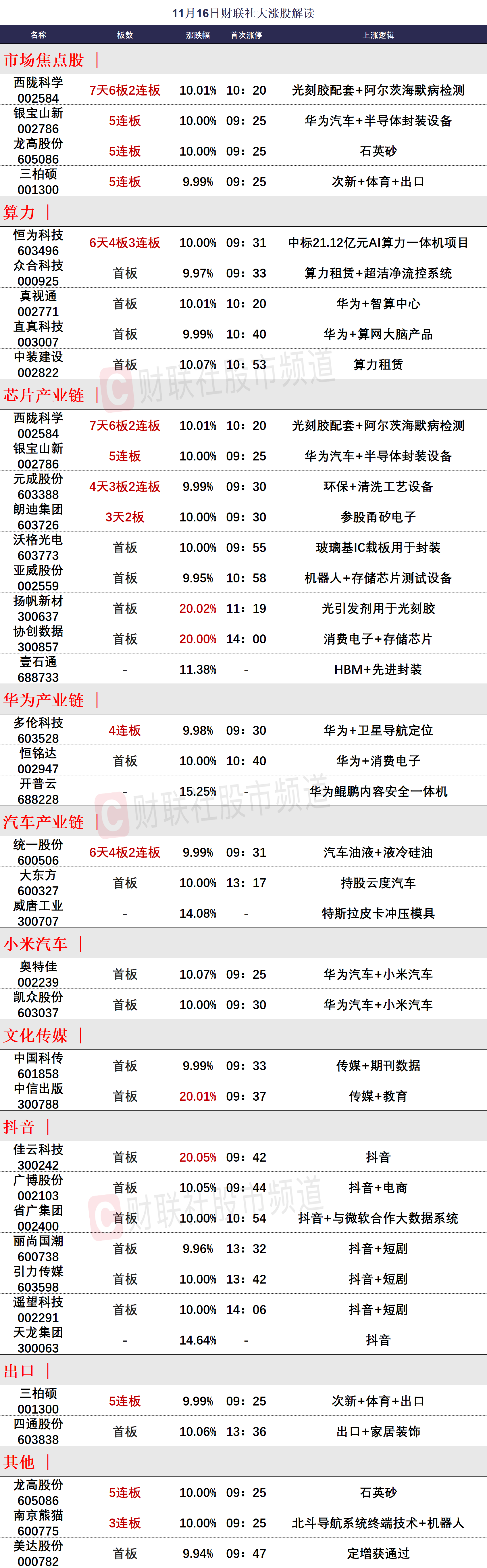 11月16日涨停分析
