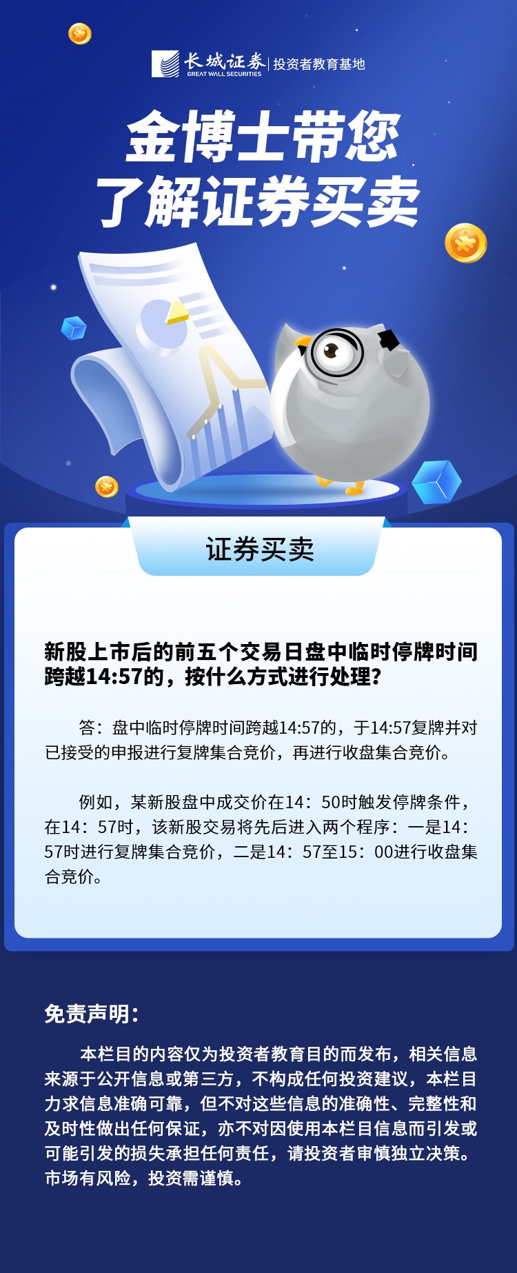 【长·原创】 新股上市后的前五个交易日盘中临时停牌时间跨越14:57的,按什么方式进行处理?
