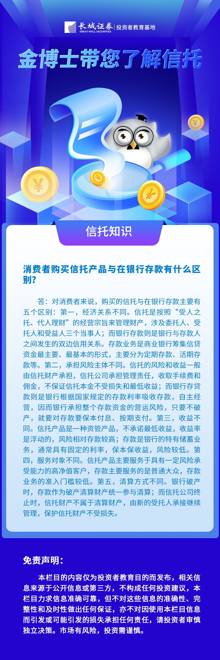 【长·原创】 消费者购买信托产品与在银行存款有什么区别?