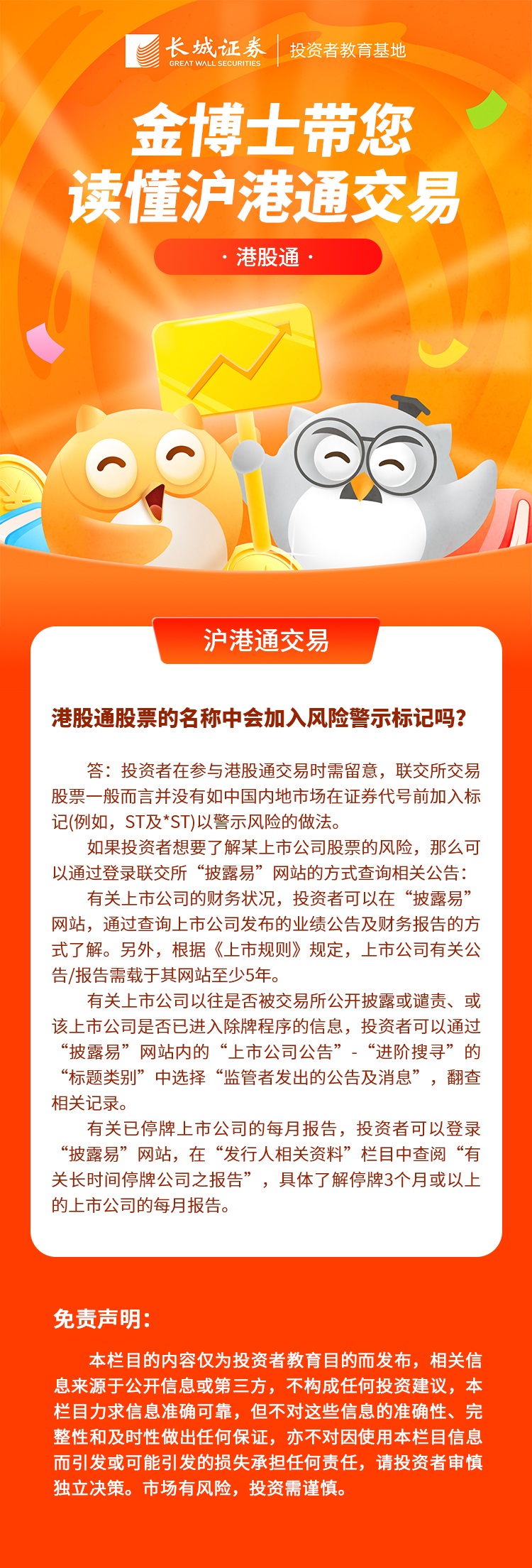 【长·原创】沪港通交易:港股通股票的名称中会加入风险警示标记吗?