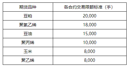 大商所对豆粕、聚氯乙烯、豆油、聚丙烯、玉米、聚乙烯期货实施交易限额