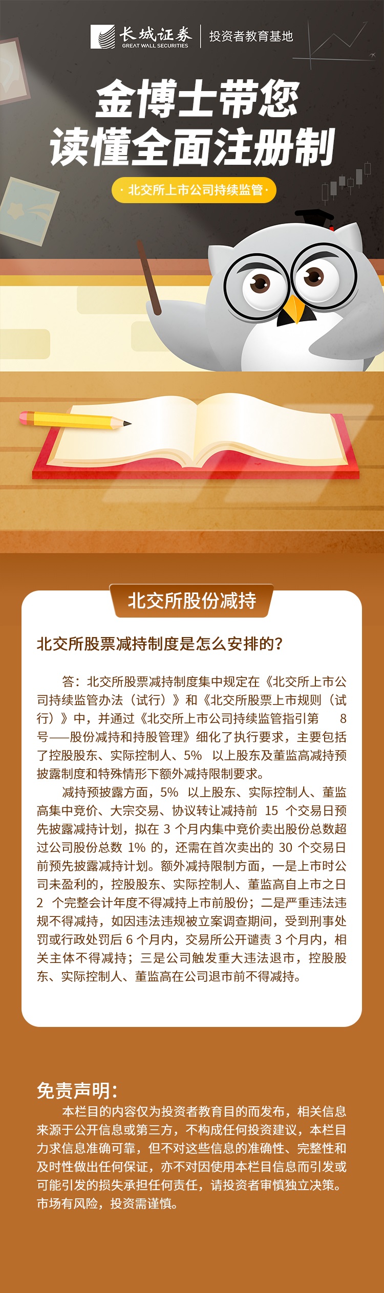 【长·原创】全面注册制下北交所业务规则之持续监管:北交所股票减持制度