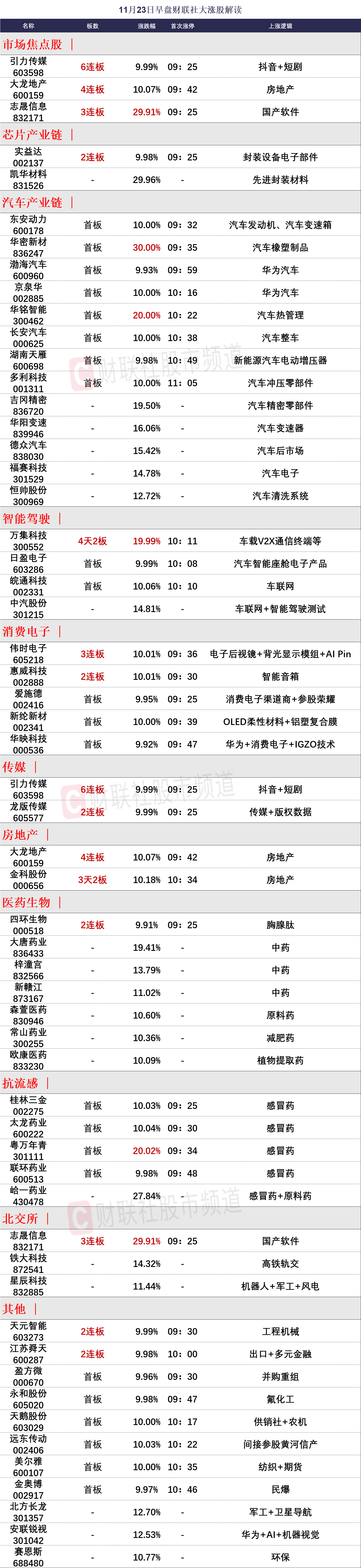 11月23日午间涨停分析