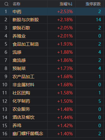 财联社11月24日电,大盘全天震荡调整,创业板指领跌。北证50指数再度大涨超6%,超20只北交所个股涨停,百股涨超10%,仅4只北交所个股下跌。盘面上,医药股持续活跃,粤万年青、鲁抗医药、特一药业、联环药业涨停。预制菜概念股集体走强,国联水产涨超10%,惠发食品、中央商场等涨停。除此外市场热点匮乏,多数板块冲高回落。下跌方面,华为概念股集体调整,彩讯股份等跌超5%。此外高位股继续退潮,圣龙股份、引力传媒多股跌停。总体上个股跌多涨少,全市场超4000只个股下跌。沪深两市今日成交额8133亿,较上个交易日缩量109亿。板块方面,中药、流感、预制菜、猪肉等板块涨幅居前,华为昇腾、鸿蒙概念、CPO、数据安全等板块跌幅居前。截至收盘,沪指跌0.68%,深成指跌0.94%,创业板指跌1.19%。北向资金全天净卖出61.96亿元,其中沪股通净卖出21.79亿元,深股通净卖出40.17亿元。
