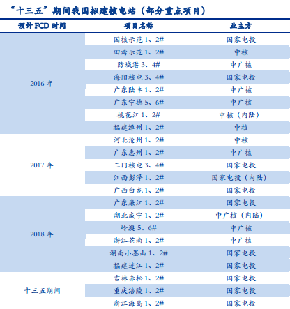 按照我国核电中长期发展规划,到“十三五”末,我国在运核电装机容量将达到5800万千瓦,在建机组达到3000万千瓦以上,机组总数达到世界第二,当前“一带一路(sh502013)”沿线64个国家中,有核电的国家仅19个,计划发展核电国家达25个,核电出口的战略机遇期也摆在我国核电企业面前。