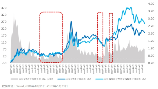 但其实,往往是在市场参与者少、成交萎靡、异常冷清的时段(如下图中标注红框区间),若能登高远望、逆直觉而动,“买在无人问津处”,此后有更大可能获得更好的收益体验。