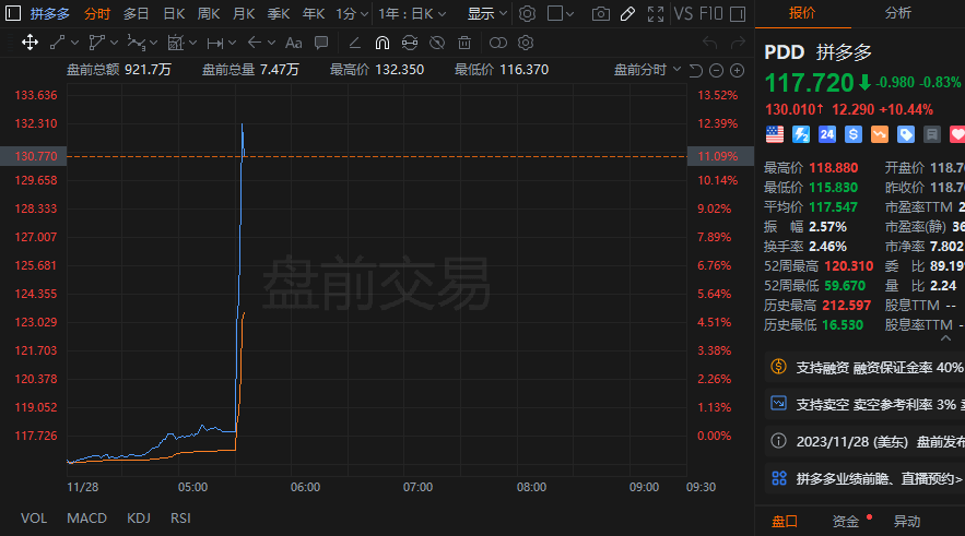 拼多多在美股盘前大涨12% 第三季度营收净利均大超预期