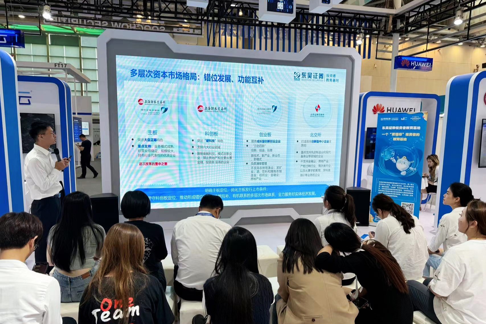 在展位设立的投教专区,东吴证券投教基地精彩亮相,通过全员宣传投教服务平台、普及金融知识、现场微沙龙主题演讲等多种形式,将特色投教服务、前沿金融知识、实用维权方法带到广大投资者身边,助力全民金融素养提升。