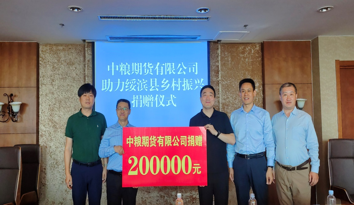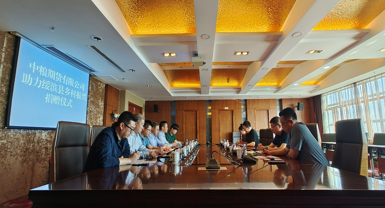 2023年9月8日,中粮期货乡村振兴工作组赴黑龙江绥滨县召开了年度乡村振兴工作座谈会,并举行捐赠仪式。回顾了近三年来开展乡村振兴帮扶工作情况,并对下一步工作开展进行了交流探讨。绥滨县副县长林宏伟、姚晓东,深圳中粮商贸服务有限公司总经理陈轼彬等出席座谈会。