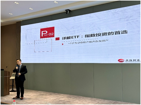 随后,西南证券湖北分公司高级投资顾问汝仲天向投资者讲解上交所ETF知识点。汝仲天从“什么是指数”入手,与投资者一起探寻了“历史的启示”、“指数投资为什么首选ETF”、“ETF的产品线有哪些”,通过设置问题的形式带领投资者一起深入了解上交所ETF。