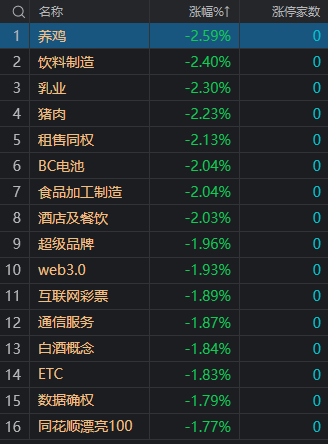 财联社12月13日电,大盘全天低开低走,三大指数均跌超1%,沪指再度失守3000点。上证50指数跌近2%,贵州茅台、山西汾酒、招商银行、宁德时代等权重股集体走弱。盘面上,国企改革概念股持续爆发,济南高新、南宁百货、四川金顶、珠江钢琴等20余股涨停。医药股集体逆势走强,金陵药业、莎普爱思、通化金马、浙江震元涨停。机器人概念股盘中拉升,巨轮智能、克劳斯等涨停。多模态概念股走势分化,云鼎科技、苏州科达、汉王科技涨停。下跌方面,白酒、食品等消费股陷入调整,泸州老窖跌超5%。总体上个股跌多涨少,全市场超3500只个股下跌。沪深两市今日成交额7686亿,较上个交易日缩量189亿。板块方面,新冠药、流感、仪器仪表、新型工业化等板块涨幅居前,猪肉、食品、BC电池、白酒等板块跌幅居前。截至收盘,沪指跌1.15%,深成指跌1.54%,创业板指跌1.66%。北向资金全天净卖出95.9亿元,其中沪股通净卖出57.71亿元,深股通净卖出38.19亿元。